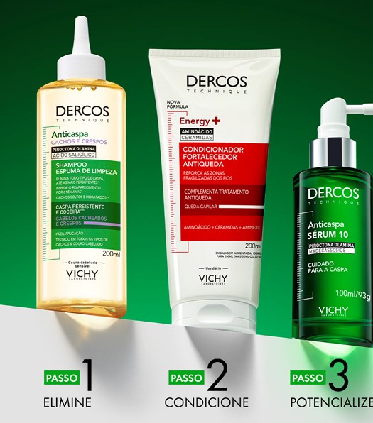 Dercos, marca Expert em Dermatologia Capilar, pioneira no cuidado dermatológico há mais de 50 anos, possui uma gama completa de soluções adaptadas para cada tipo de cabelo e necessidade do couro cabeludo, associando ingredientes de alta performance com texturas sensoriais, ideal para uso diário.